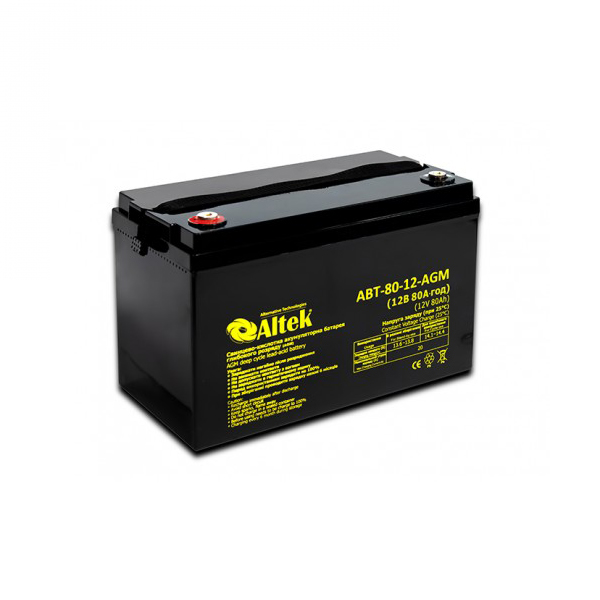 Акумулятор Altek ABT-80-12-AGM — герметична свинцево-кислотна батарея з технологією скломату, що абсорбує. Застосовується в сонячній енергетиці у системах резервного та автономного живлення будинків, офісів, комерційних об’єктів. Перевагою цієї моделі є більш висока густина енергії, безпека, тривалий термін служби.