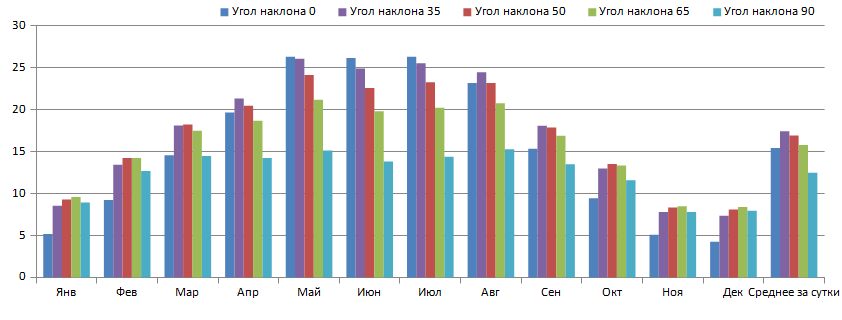 Середньодобове вироблення мережевої станції залежить від регіону та пори року – влітку вона більша, а взимку менша, оскільки сонця в цей час мало і світловий день триває недовго. Для центральних регіонів графік середньодобового виробітку виглядає приблизно так: