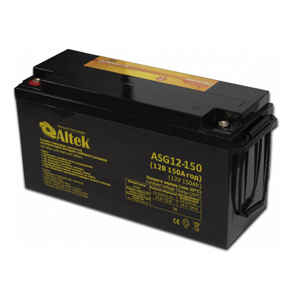 Аккумулятор Altek ABT-150Аh/12V GEL — надежная гелевая свинцово-кислотная батарея для организации резервного электроснабжения вашего дома или бизнеса. Применяется в альтернативной энергетике, в частности в фотоэлектрических системах. Гелевые АБ устойчивы к коррозии и нагреву, более безопасны, работают в широком спектре температур, допускают кратковременный глубокий разряд и обеспечивают высокую скорость заряда.