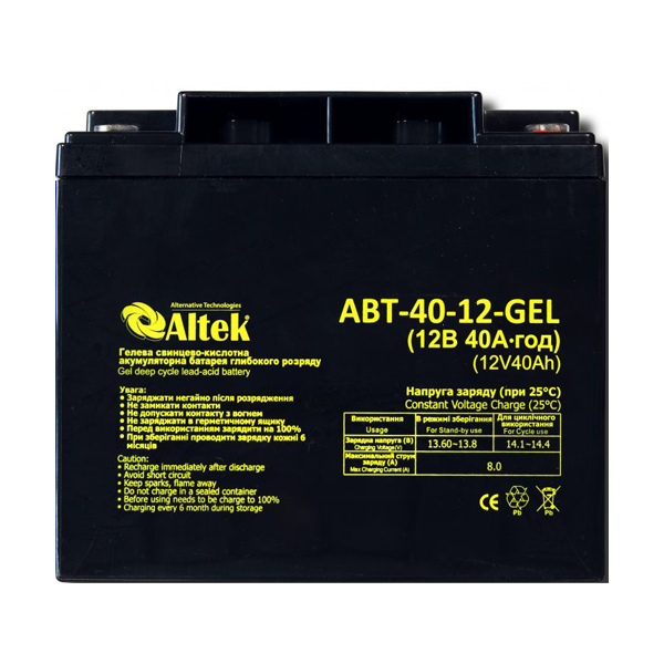 Altek ABT-40Аh/12V GEL — безопасная и надежная батарея для домашнего и промышленного применения.