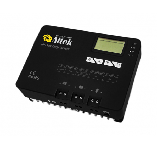 Контроллер заряда Altek 40A24M-LCD — высокоэффективное многофункциональное устройство с МРРТ технологией. Применяется в солнечных станциях для обеспечения правильной зарядки аккумуляторной батареи, защиты ее от повреждений и продления жизненного цикла. Совместим с литиевыми, свинцово-кислотными, GEL и AGM типами аккумуляторов. Конструкция со встроенным ЖК-дисплеем позволяет быстро настраивать режимы работы, наблюдать за состоянием и параметрами устройства, рационально управлять энергией.